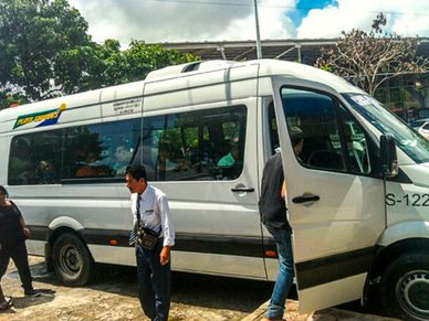 This public shuttle van is called The Playa Express. It departs every 10 minutes (during day time hours,) from downtown Cancun and is about an hour ride to downtown Playa Del Carmen. Making random stops along the highway, letting passengers on and off, it also makes a stop in Puerto Morelos. With the same route in reverse, leaving downtown Playa returning back to downtown Cancun. It costs 45 pesos per person.